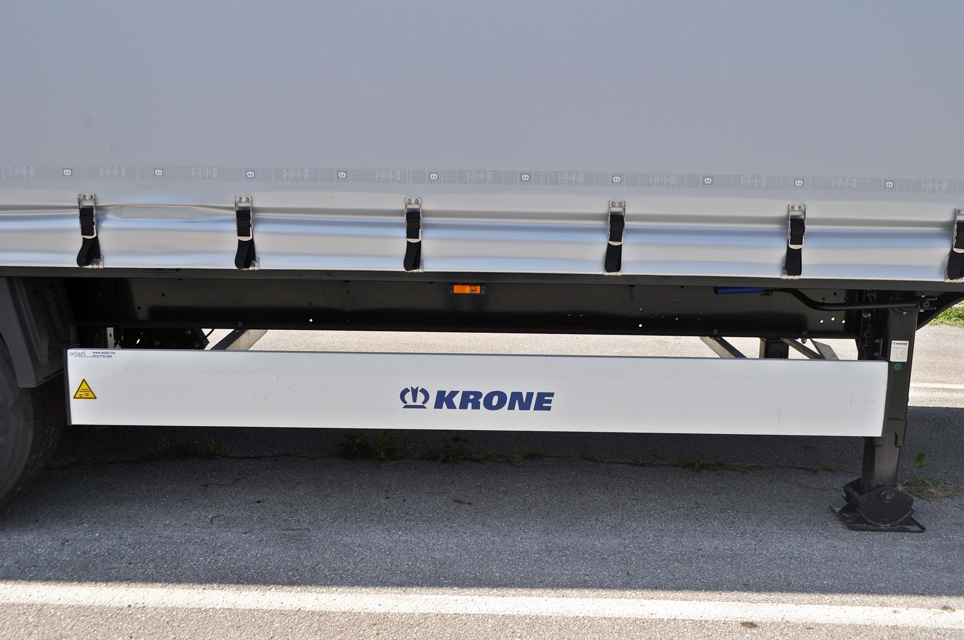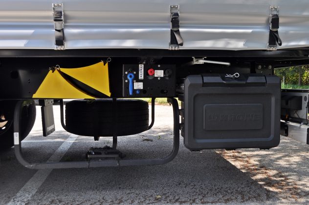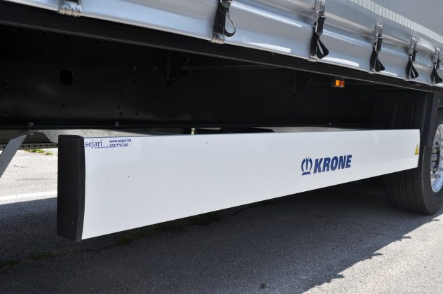 Isporučeni Profi Liner Varios ima domaće Krone osovine na kojima je montirano šest premium pneumatika Continental Conti Hybrid HT3 u dimenziji 385/55 R22.5. Na poluprikolicu su montirana i dva nosača rezervnog točka uz jednu rezervnu gumu, a prva osovina je podizna. Nova generacija Krone vozila donosi i KRONE Smart Tire Monitoring sistem za praćenje pritiska i temperature u gumama za veću sigurnost i vozila i tereta, ali i ostalih učesnika u saobraćaju. Za sigurnost će se također pobrinuti Wabco kočioni sistem uz EBS, disk kočnice na svim osovinama i sistem za stabilnost na cesti. Rasvjeta je također bitna u osiguravanju bezbjednih uslova vožnje, a u tome je nova generacija Krone priključnih vozila postala pravi majstor. Kompletna rasvjeta na ovom vozilu je u LED izvedbi, a nju čine LED bočna konturna svjetla, koja su istovremeno i indikatori pravca, dva LED konturna svjetla sa gumenom ručicom i LED rasvjeta tablice. Glavni rasvjetni panel čini nova generacija Hella gen.2 full LED svjetala posebno razvijenih i dizajniranih za Krone priključna vozila.
