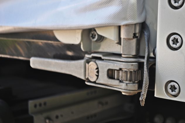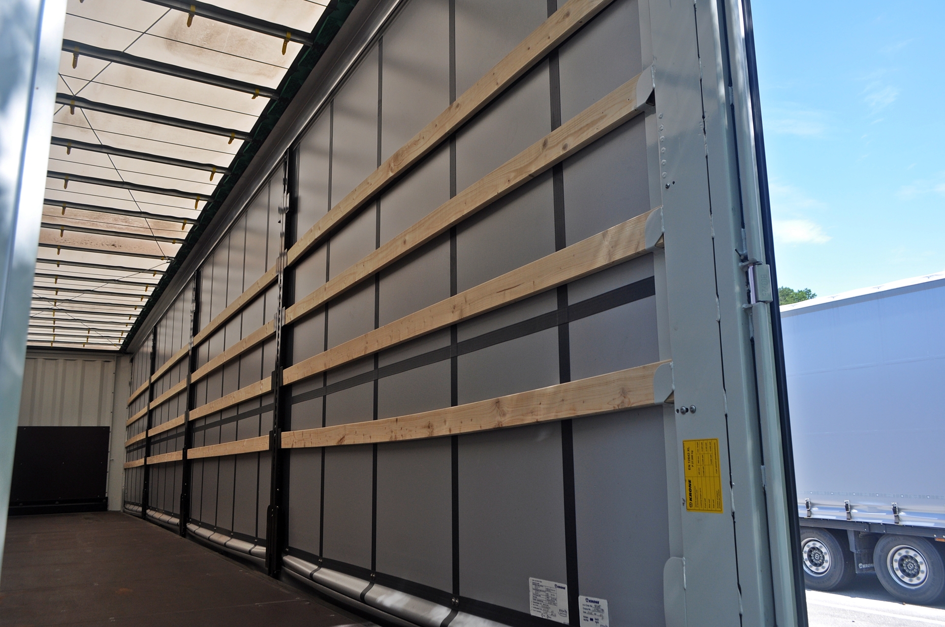Prednji zid je čelični, dok su zadnja vrata od aluminijuma i dvokrilna. Unutrašnjost poluprikolice čini kvalitetni pod 30 mm debljine sa premium brtvljenjem kako bi se efikasnost i radni vijek maksimizirali. Bočna pristupna visina iznosi 2.810 mm, a unutrašnja visina, zahvaljujući Edscha podiznom krovu može ići do 2.950 mm što je jedinstveno i specifično za ovaj tip poluprikolice. Profi Liner Varios ima trostrani rolo, ojačanu krovnu konstrukciju te XL i certifikat za prevoz pića. Cerada je klasična Krone u boji bijelog aluminijuma, a od ostale opreme možemo istaći merdevine pozadi za lakši ulaz u poluprikolicu, kutiju za alat, dva podmetača za točkove, četiri reda drvenih letvi te prepoznatljive Krone bočne i zadnje branike.
